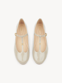 Crafted from patent calfskin, this revisited Marcie ballerina pairs a Mary Jane silhouette with an almond toe shape. The upper is detailed with Marcie's gold-tone hardware in miniature while the Chloe-engraved buckle lends a signature finish to these comfortable ballet flats. PRODUCT DETAILS Flat ballerina Upper: calfskin Inner sole: lambskin Main lining: lambskin Sole: cowhide Fit true to size, European sizing - Buckle fastening To make this product, Chloe worked with Leather Working Group (LWG) certified leather manufacturers. LWG certifies tanneries based on their water and energy usage, management of chemicals, solid waste, and wastewater. Color: City Grey Item code: CH25A02NSG034