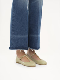 Crafted from semi-shiny lambskin, these revisited Marcie ballerinas pair a Mary Jane silhouette with an almond toe shape. The upper is detailed with Marcie's gold-tone buckle in miniature, while the Chloe-engraved buckle lends a signature finish to these comfortable ballet flats. PRODUCT DETAILS Flat ballerina Upper: lambskin Inner sole: lambskin Main lining: lambskin Sole: cowhide Fit true to size, European sizing - Buckle fastening To make this product, Chloe worked with Leather Working Group (LWG) certified leather manufacturers. LWG certifies tanneries based on their water and energy usage, management of chemicals, solid waste, and wastewater. Color: Spearmint Item code: CHC25U02NRC33B