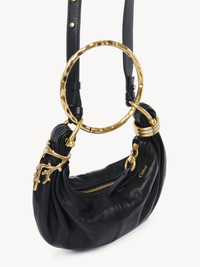 Inspired by the Maison's Archives, this mini Bracelet Hobo bag is crafted from grained buffalo leather. The supple, rounded shape is elevated by a hammered bracelet handle, a golden coral charm and stacked bi-color rings. Carry this mini Bracelet bag in the hand, on the shoulder or crossbody. PRODUCT DETAILS Mini Bracelet Hobo bag in grained buffalo leather Main material: Buffalo leather Main lining: Calfskin Carry: Hand, shoulder & crossbody - 1 main compartment - 1 inside flat pocket - 1 removable ring handle - 1 adjustable & removable strap - Zip closure Comes with a dust bag - Width: 8.3" (21 cm) - Height: 5.5" (14 cm) - Depth: 2.4" (6 cm) - Handle drop: 8.7" (22 cm) - Min. strap drop: 16.5" (42 cm) - Max. strap drop: 19.7" (50 cm) This hobo bag is made from semi-aniline leather. Tanning imparts a specific character to the skin, such as hues and wrinkles, combined with a light and transparent aniline finish. Respect the care instructions on the leaflet. To make this product, Chloe worked with Leather Working Group (LWG) certified leather manufacturers. LWG certifies tanneries based on their water and energy usage, management of chemicals, solid waste, and wastewater. Color: Black Item code: CH25US623P58001