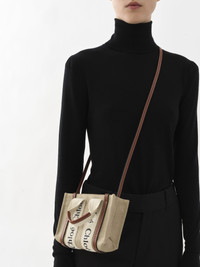 Crafted from linen canvas detailed with shiny calfskin strips, this mini Woody tote bag is a compact day-to-evening bag with a strong summer attitude. The main compartment fits a mobile phone. The bag's sharp, modern lines are emphasized by the contrasting vertical leather strips and the signature Chloé logo ribbon carried over from the Maison's Woody mule. Carry this mini bag in hand. PRODUCT DETAILS Tote bag in linen canvas & shiny calfskin with Woody ribbon Carry: hand, long shoulder & cross-body - 1 strap & 1 top handle - 1 main compartment (fits a mobile phone) Comes with a dust bag - Width: 7.9" (20 cm) - Height: 5.5" (14 cm) - Depth: 1.6" (4 cm) - Handle drop: 3.1" (8 cm) - Strap drop: 20.5" (52 cm) This mini tote bag is made from linen. In an effort to limit its environmental impact and have a positive influence on society, Chloé is accelerating its transition to more responsible sourcing. This progress is most notably reflected in the introduction of linen—an inherently low-impact material—to the collection. Respect care instructions on the leaflet. By purchasing this product, you are supporting sustainable leather manufacturing through the Leather Working Group. Color: White & Brown Item code: CHC22AP237I2690U