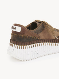Crafted from a mix of suede cowhide and crackled sheepskin, these Nama sneakers are set on an iconic, lightweight and ultra-comfortable recycled sole with a speckled effect. They are finished with immaculate blanket stitching which takes 4.5 hours to complete by hand. Chloe logo embroidery signs the back and tongue. PRODUCT DETAILS Sneaker heel height: 2" (5 cm) Heel-to-toe drop: 0.8" (2 cm) Upper: 80% cowhide, 20% sheepskin Inner sole: calfskin Main lining: polyester Sole: 50% ethylene vinyl acetate, 50% rubber Fit true to size, European sizing - Lace-up To make this product, Chloe worked with Leather Working Group (LWG) certified leather manufacturers. LWG certifies tanneries based on their water and energy usage, management of chemicals, solid waste, and wastewater. Color: Oak Brown Item code: CH25W00RTV23O