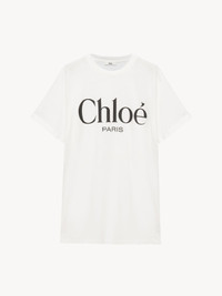 Crew-neck oversized T-shirt in light washed cotton jersey, featuring a contrast Chloe Paris logo print at the front. PRODUCT DETAILS Oversized logo T-shirt outer shell: 100% Cotton Fit: oversized - The model is 5'10" (178 cm) and wears a prototype in size 36 - Logo T-shirt - Slips on Care: gentle wash 90°F (30°C) Color: White Item code: CH25SJH20191101