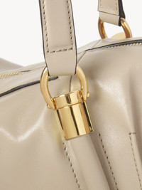Crafted from natural shiny calfskin, the Paraty 24 shoulder bag is inspired by the Chloé archives, combining sharp lines and rounded curves with gold hardware. Paraty 24 features double handles and a strap for hand, shoulder or cross-body carry. PRODUCT DETAILS Shoulder bag in natural shiny calfskin Main material: Calfskin Main lining: 54% Cotton, 46% Linen Carry: Hand, shoulder & cross-body - 1 main compartment - 1 inside flat pocket - Double handles - 1 adjustable & removable strap - Zip closure Comes with a dust bag - Width: 16.3" (41.5 cm) - Height: 7.5" (19 cm) - Depth: 7.1" (18 cm) - Handle drop: 11" (29 cm) - Min. strap drop: 19.7" (50 cm) - Max. strap drop: 23.6” (60 cm) This handbag is made from semi-aniline leather. The half-transparent finish imparts a robust nature to the product while preserving its natural character. Follow all care instructions on the insert. To make this product, Chloé worked with Leather Working Group (LWG) certified leather manufacturers. LWG certifies tanneries based on their water and energy usage, management of chemicals, solid waste, and wastewater. Color: Sweet Beige Item code: CHC24AS750N8224Q
