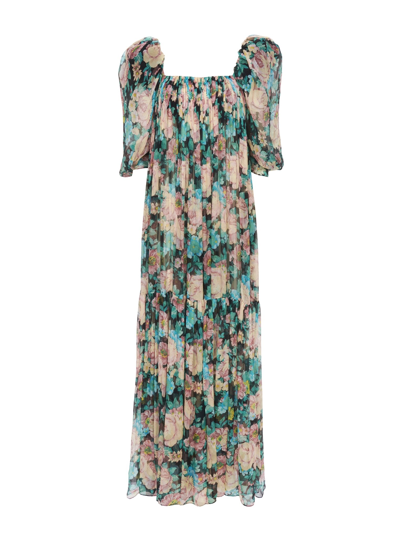 PUFF-SLEEVE LONG DRESS IN SILK MOUSSELINE