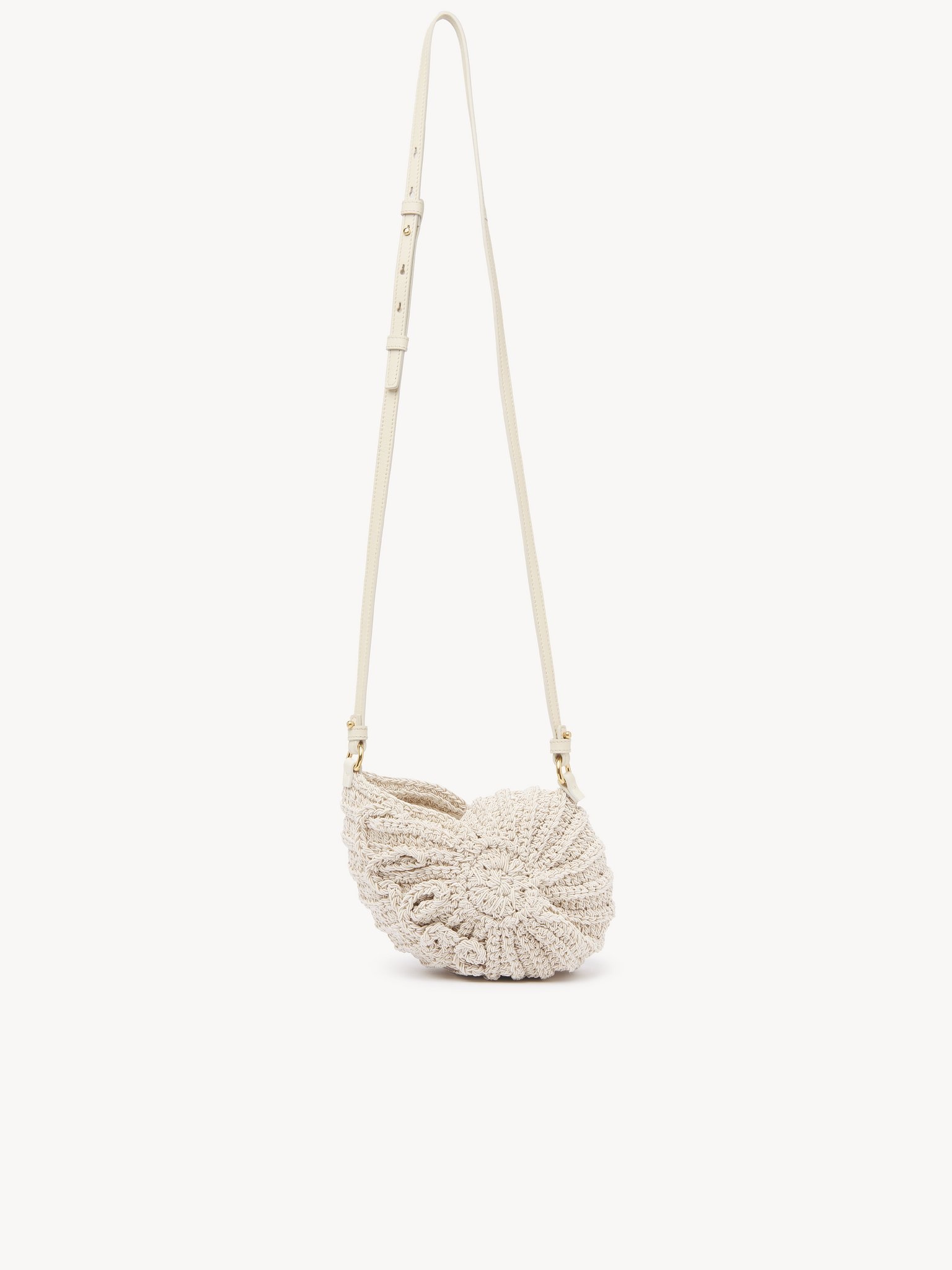 The Sea Treasures crossbody bag recreates a shell shape in crochet. The front features a tonal handwritten signature inspired by the Chloe heritage. Carry on the shoulder or crossbody with the leather strap. PRODUCT DETAILS Sea Treasures crossbody bag in crochet Main material: Acrylic Secondary material: Calfskin Main lining: Acrylic Carry: Shoulder & crossbody - 1 main compartment Comes with a dust bag - Width: 7.5" (19 cm) - Height: 6.7" (17 cm) - Depth: 2.8" (7 cm) - Min. strap drop: 20.5" (52 cm) - Max. strap drop: 22" (56 cm) This handbag is made from a woven fabrication adapted to leather goods requirements. A water-repellent treatment was applied to the fabric, but rain exposure should be avoided. Avoid rubbing this material against color-contrasting materials and shield it from humidity, light, heat, liquids and greasy substances. Follow all care instructions on the insert. Color: Deep Ivory Item code: CH25US219P2322J