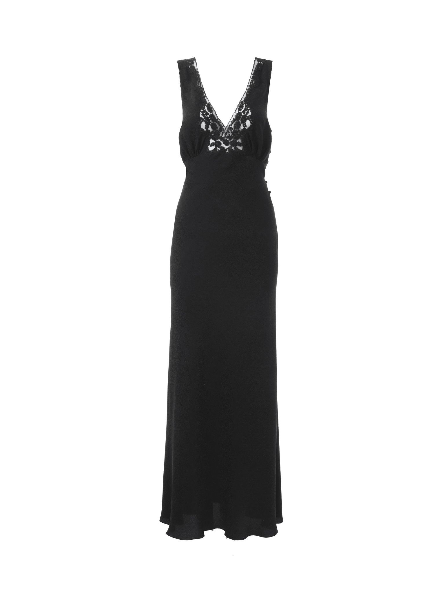 SLEEVELESS COLUMN DRESS IN SILK JACQUARD & LACE