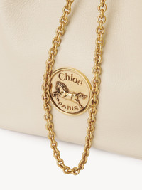 The small Bracelet backpack is crafted from grained buffalo leather. The supple silhouette is embellished with an oversized bracelet handle, a drawstring chain and the Maison's signature Horse Medal. Carry this small Bracelet bag in the hand or over the shoulders with the removable straps. PRODUCT DETAILS Small Bracelet backpack in grained buffalo leather Main material: Buffalo leather Main lining: 55% Cotton, 45% Linen Carry: Back & hand - 1 main compartment - 1 inside pocket - 1 removable ring handle - 2 adjustable & removable straps - Snap & drawstring closure Comes with a dust bag - Width: 8.7" (22 cm) - Height: 8.7" (22 cm) - Depth: 4.1" (10.5 cm) - Handle drop: 8.7" (8.5 cm) - Min. strap drop: 16.5" (41 cm) - Max. strap drop: 19.7" (47 cm) This backpack is made from semi-aniline leather. Tanning imparts a specific character to the skin, such as hues and wrinkles, combined with a light and transparent aniline finish. Respect the care instructions on the leaflet. To make this product, Chloe worked with Leather Working Group (LWG) certified leather manufacturers. LWG certifies tanneries based on their water and energy usage, management of chemicals, solid waste, and wastewater. Color: Vegetal Beige Item code: CH25US774O3723N
