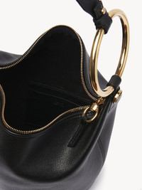 This small Bracelet shoulder bag is crafted from grained buffalo leather. The supple, rounded shape is elevated by oversized bracelet handles secured by the Maison's signature Horse Medal hardware. This Bracelet bag comes with a removable strap for hand, shoulder and wrist carry. PRODUCT DETAILS Small Bracelet handbag in grained buffalo leather Main material: Buffalo leather Main lining: Calfskin Carry: Hand, shoulder & wrist - 1 main compartment - 1 small inside pocket - 1 removable leather handle - Zip closure Comes with a dust bag - Width: 6.7" (17 cm) - Height: 6.3" (16 cm) - Depth: 5.5" (14 cm) - Handle drop: 10.6" (27 cm) - Ring drop: 7.1" (18 cm) This handbag is made from natural leather with a very light finish. Keep away from water (rain). The bag may develop smooth or light halos. If the leather gets wet, dry it with a soft white cotton cloth to absorb water. With use, the leather may become marked. For large and medium size bags, the handle will arrive inside the bag. Do not throw it away. To make this product, Chloe worked with Leather Working Group (LWG) certified leather manufacturers. LWG certifies tanneries based on their water and energy usage, management of chemicals, solid waste, and wastewater. Color: Black Item code: CHC25SS618O37001