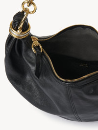 This small Bracelet hobo bag is crafted from shiny grained buffalo leather. The supple, rounded shape is elevated by a playful banana handle inspired by the Maison's Spring 2001 collection. Stacked bi-color rings finish the ends. Carry this small wristlet bag on the shoulder. Wear with matching pieces from the jewelry and accessories collections. PRODUCT DETAILS Small Bracelet hobo bag in grained buffalo leather Main material: Asian Water Buffalo Leather Main lining: Split Calfskin Carry: Shoulder - 1 main compartment - 1 inside flat pocket - Banana-shaped metal handle - Zipper closure Comes with a dust bag - Width: 12.6" (32 cm) - Height: 5.5" (14 cm) - Depth: 3.9" (10 cm) - Handle drop: 9.4" (24 cm) This hobo bag is made from semi-aniline leather. The half-transparent finish imparts a robust nature to the product while preserving its natural character. Respect the care instructions on the leaflet. To make this product, Chloe worked with Leather Working Group (LWG) certified leather manufacturers. LWG certifies tanneries based on their water and energy usage, management of chemicals, solid waste, and wastewater. Color: Black Item code: CHC24WS614O37001