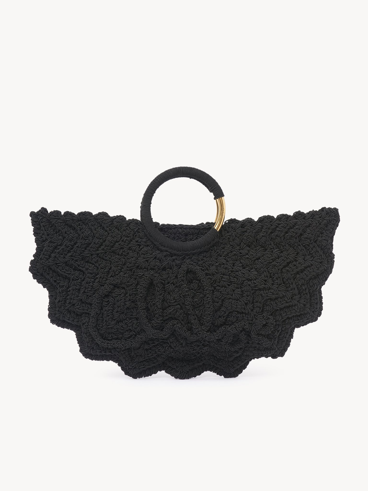 The small Bracelet Paravent crochet tote bag pairs a scalloped silhouette with the line's semi-covered golden bracelet handle. The front features a handwritten Chloe signature inspired by the Maison's heritage. PRODUCT DETAILS Small Bracelet Paravent tote bag in crochet Main material: Acrylic Main lining: Lambskin Carry: Hand - 1 main compartment - Magnet closure Comes with a dust bag - Width: 16.5" (42 cm) - Height: 8.3" (21 cm) - Depth: 0.8" (2 cm) - Handle drop: 2.2" (5.5 cm) This tote bag is made from a woven fabrication adapted to leather goods requirements. A water-repellent treatment was applied to the fabric, but rain exposure should be avoided. Avoid rubbing this material against color-contrasting materials and shield it from humidity, light, heat, liquids and greasy substances. Follow all care instructions on the insert. Color: Black Item code: CH25US622P23001