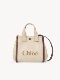 This small Chloe Carry tote bag is crafted from striped raffia-effect fibers, complemented by contrasting vertical leather bands and an oversized Chloe logo. This day bag has magnets at the sides, allowing the structured silhouette to be adjusted to a rounded, more compact shape. Carry with the double handles or the adjustable, removable strap. PRODUCT DETAILS Small Chloe Carry tote bag in raffia-effect fibers Main material: 69% Cotton, 31% Polyamide Secondary material: Calfskin Main lining: Cotton Carry: Hand & shoulder - 1 main compartment - 1 inside flat pocket - 1 adjustable & removable strap - Snap closure Comes with a dust bag - Width: 10.6" (27 cm) - Height: 9.3" (23.5 cm) - Depth: 4.7" (12 cm) - Handle drop: 4.3" (11 cm) - Min. strap drop: 19.7" (50 cm) - Max. strap drop: 22.8" (58 cm) Color: Hot Sand Item code: CH25US911P1924P