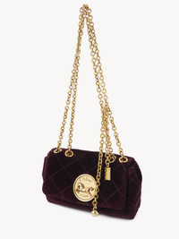 Crafted from quilted velvet, this small Chloe Heritage shoulder bag is inspired by the Maison's codes. The supple, curved construction is embellished with gold-tone hardware, combining a signature Horse Medal closure with dangling charms. Carry on the shoulder or crossbody with the adjustable chain strap. PRODUCT DETAILS Small Chloe Heritage shoulder bag in quilted velvet Main material: Cotton Main lining: Lambskin Flap lining: Cotton Carry: Shoulder & crossbody - 1 main compartment - 1 inside flat card pocket - 1 front slip pocket - 1 adjustable chain with chain stopper - Magnet clasp closure with notch Comes with a dust bag - Width: 8.3" (21 cm) - Height: 5.1" (13 cm) - Depth: 2.2" (5 cm) - Max. strap drop: 20.5" (52 cm) Color: Crafty Brown Item code: CH25AS585P9027M