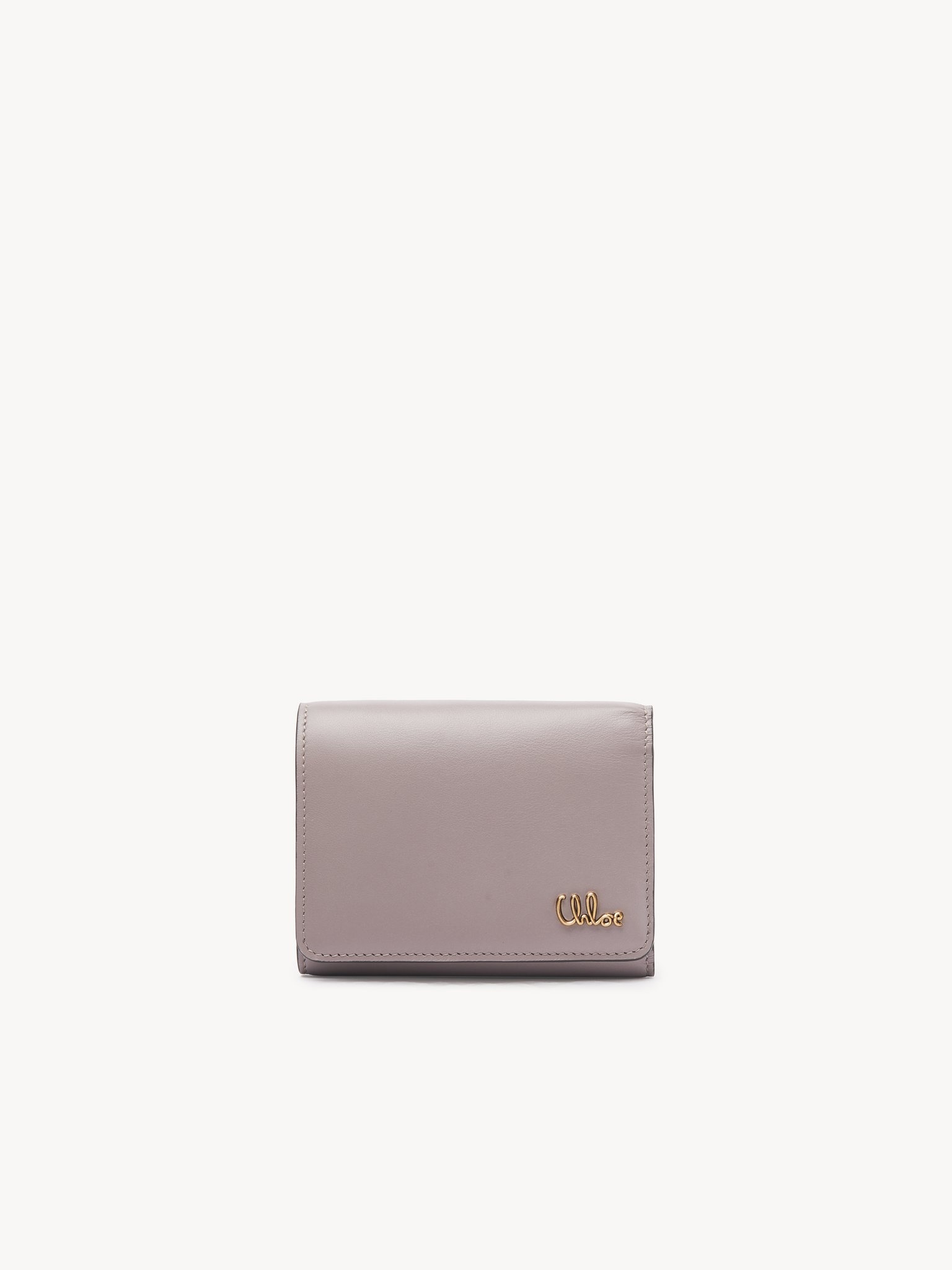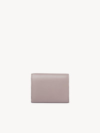 Crafted from shiny calfskin, the small Chloe Iconic tri-fold wallet combines a minimalist design with a metallic signature from the Maison's archives. This small wallet features a coin pocket, bill compartment and multiple card slots. PRODUCT DETAILS Small tri-fold wallet in shiny calfskin Main lining: Calfskin Inner lining: 65% Polyester, 35% Cotton - 1 bill compartment - 1 coin pocket - 4 card slots - 2 flat pockets - Snap button closure Comes with a dust bag - Width: 4.3" (11 cm) - Height: 3.5" (9 cm) - Depth: 1.6" (4 cm) This small wallet is made from natural leather with a very light finish. Keep away from water (rain). The wallet may develop smooth or light halos. If the leather gets wet, dry it with a soft white cloth to absorb water. With use, the leather may become marked. To make this product, Chloe worked with Leather Working Group (LWG) certified leather manufacturers. LWG certifies tanneries based on their water and energy usage, management of chemicals, solid waste, and wastewater. Color: Grizzled Purple Item code: CH25SP483O16567