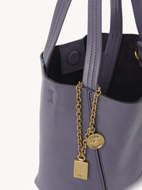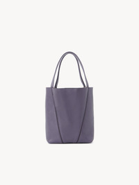Crafted from shiny grained cowhide, the small Chloe Spin tote bag has a minimalist silhouette elevated with graphic lines. A dangling chain features the Maison's signature Chloe and Horse Medals. The compact interior combines with double handles and a removable strap. Wear on the shoulder, crossbody, or slide the handles through the ring for hand or wrist carry. PRODUCT DETAILS Small Chloe Spin tote bag in shiny grained cowhide Main material: Cowhide Main lining: Cowhide Carry: Shoulder, crossbody, hand & wrist - 1 main compartment - Removable and adjustable strap - Magnetic closure Comes with a dust bag - Width: 7.1" (18 cm) - Height: 7.5" (19 cm) - Depth: 3.1" (8 cm) - Handle drop: 5.1" (13 cm) - Min. strap drop: 23.6" (60 cm) - Max. strap drop: 25.6" (65 cm) To make this product, Chloe worked with Leather Working Group (LWG) certified leather manufacturers. LWG certifies tanneries based on their water and energy usage, management of chemicals, solid waste, and wastewater. This Chloe Spin bag is made with unlined leather, so there may be slight marks inside the bag, such as veins or scratches. Color: Shadow Purple Item code: CH25SS812N84575