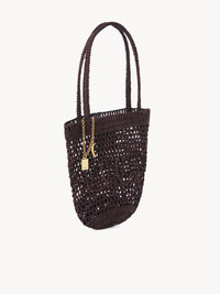 This small Summer Banana tote bag was crafted from raffia by a single artisan over 3 days in collaboration with Made For A Woman. The rounded compartment features a handwritten signature inspired by the Chloe heritage. A dangling chain and charms finish this roomy tote. PRODUCT DETAILS Small Summer Banana tote bag in raffia & calfskin Main material: Raffia Main lining: Raffia Inside trim: Calfskin Carry: Shoulder - 1 main compartment Comes with a dust bag - Width: 8.7" (22 cm) - Height: 11.8" (30 cm) - Depth: 0.8" (2 cm) This model has been handwoven with natural fibers, so the dimensions may slightly vary from one basket to another. - Handle drop: 7.5" (19 cm) To make this product, Chloe worked with Leather Working Group (LWG) certified leather manufacturers. LWG certifies tanneries based on their water and energy usage, management of chemicals, solid waste, and wastewater. This product was made in collaboration with Made For A Woman, a WFTO certified organization. Founded in 2019, Made For A Woman is a social entrepreneurship project rooted in Madagascar, dedicated to empowering artisans and their families by providing them with resources and opportunities to grow, thrive, and embrace their full potential. Color: Kohl Brown Item code: CH25AS903P0824X