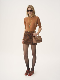 Straight mini skirt in paisley tapestry jacquard with a gold-tone button at the waist. PRODUCT DETAILS Straight mini skirt outer shell: 42% Viscose, 30% Polyester, 28% Cotton Lining: 62% Viscose, 38% Cotton Fit: straight, mini length - The model is 5'10" (178 cm) and wears a prototype in size 34 - Paisley mini skirt - Left-side zipper & hook fastening - Gold-tone button at left side of waist Color: Red Multicolor Item code: CH25AJU1228269A