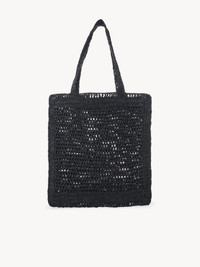 The Summer Banana tote bag was crafted from raffia and calfskin by a single artisan over 4.5 days in collaboration with Made For A Woman. The front features a handwritten signature inspired by the Chloe heritage. A dangling chain and charms finish this spacious tote. PRODUCT DETAILS Summer Banana tote bag in raffia & calfskin Main material: Cellulose paper Main lining: Cellulose paper Trim: Buffalo leather Carry: Shoulder - 2 main compartments - Magnet closure Comes with a dust bag - Width: 13" (33 cm) - Height: 14.6" (37 cm) - Depth: 0.8" (2 cm) This model has been handwoven with natural fibers, so the dimensions may slightly vary from one basket to another. - Handle drop: 7.9" (20 cm) This tote bag is made from a woven fabrication adapted to leather goods requirements. A water-repellent treatment was applied to the fabric, but rain exposure should be avoided. Avoid rubbing this material against color-contrasting materials and shield it from humidity, light, heat, liquids and greasy substances. Follow all care instructions on the insert. To make this product, Chloe worked with Leather Working Group (LWG) certified leather manufacturers. LWG certifies tanneries based on their water and energy usage, management of chemicals, solid waste, and wastewater. Made For A Woman is a social enterprise based in Madagascar that aims to empower vulnerable women, support them with living wages and help to build their life with their family. Color: Black Item code: CH25US901P08001