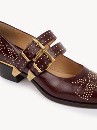DESCRIPTION Inspired by the line's iconic boots, these Susanna strappy pumps are crafted from shiny calfskin and finished with the line's emblematic gold-tone studs and buckles. The elongated toe shape combines with a Cuban heel and thick sole for a cowboy attitude. PRODUCT DETAILS Pump heel height: 0.8" (4 cm) Heel-to-toe drop: 1.2" (3 cm) Upper: calfskin Inner sole: lambskin Main lining: lambskin Sole: cowhide Heel: cowhide Fit true to size, European sizing - Buckle fastening To make this product, Chloe worked with Leather Working Group (LWG) certified leather manufacturers. LWG certifies tanneries based on their water and energy usage, management of chemicals, solid waste, and wastewater. Color: Hot Brown Item code: CH26S16WWF241