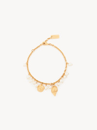 DESCRIPTION Chloe Shells chain bracelet in vintage gold brass, detailed with shell charms and synthetic pearls. A Chloe logo plate finishes this adjustable bracelet. PRODUCT DETAILS Chain bracelet in brass & synthetic pearls - One size only - Adjustable - Chloe logo plate Color: Vintage Gold Item code: CHC25UFB83SYP9DC CARE INSTRUCTIONS To ensure this item's quality and longevity, wear it regularly and avoid exposure to direct sunlight and heat. Avoid impact, and contact with water, perfume or chlorine. Store your jewel in its pouch and box when not in use.