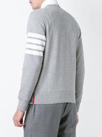 Pebble grey Made from loopback cotton jersey Crew neck with V insert Long sleeves 4-Bar stripe at left arm Name tag applique at left side Tricolour grosgrain loop at nape Ribbed trims Straight hem with button side fastening Relaxed fit Crafted in Japan 4bar manica 4Bar cotton sweatshirt