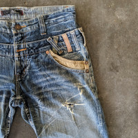 [DESCRIPTION] Please read the description first before buy my items‼️‼️‼️ Vtg Dominate 7 Pockets Faded Distressed Denim Jeans Pants Size on tag : [MATERIAL] Cotton [MEASUREMENT] Measurement ( WHEN LAID FLAT ): Waist: 34 inch (recommended) Insean: 32 inch Opening Leg: 16 inch Front Rise: 10.5 inch Thigh: 22 inch [CONDITION] - Used, Please refer photos carefully before purchase [PAYMENT & NOTICE] - We accept PayPal ONLY - No RETURN/REFUND (Please check the manual measurement properly) - All items will be post over shipping company counter within 1-3 working days after payment completed and please allow 1-3 weeks for shipping delivery to your destination. -We are trusted seller. Do message me if you have any questions to ask about this item. 🍃 Please leave your phone number after your purchase for shipping ❌ATTENTION❌ 💥Do not rely on tag size as pre-worn item may have been altered,stretched or shrunk & vintage sizes do not directly translate the modern sizes 💥Item above 100$ will be shipped via Fedex express and below 100$ will be shipped via Standart International Shipping.Or if your price is lower than 100$ but urgently need the item ,please add another 25$,i will arrange best shipping company 💥No shipping to Israel 💥Bundle buy get special price 💥Measurement might be different +- 1"or 2”. 💥Colour might be different due to lighting Effect. ALL ITEMS ARE SHIPPED VIA REGISTERED AIR MAIL MALAYSIAN POST SIGN FOR WITH TRACKING NUMBER. #REF0500