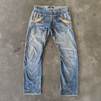 [DESCRIPTION] Please read the description first before buy my items‼️‼️‼️ Vtg Dominate 7 Pockets Faded Distressed Denim Jeans Pants Size on tag : [MATERIAL] Cotton [MEASUREMENT] Measurement ( WHEN LAID FLAT ): Waist: 34 inch (recommended) Insean: 32 inch Opening Leg: 16 inch Front Rise: 10.5 inch Thigh: 22 inch [CONDITION] - Used, Please refer photos carefully before purchase [PAYMENT & NOTICE] - We accept PayPal ONLY - No RETURN/REFUND (Please check the manual measurement properly) - All items will be post over shipping company counter within 1-3 working days after payment completed and please allow 1-3 weeks for shipping delivery to your destination. -We are trusted seller. Do message me if you have any questions to ask about this item. 🍃 Please leave your phone number after your purchase for shipping ❌ATTENTION❌ 💥Do not rely on tag size as pre-worn item may have been altered,stretched or shrunk & vintage sizes do not directly translate the modern sizes 💥Item above 100$ will be shipped via Fedex express and below 100$ will be shipped via Standart International Shipping.Or if your price is lower than 100$ but urgently need the item ,please add another 25$,i will arrange best shipping company 💥No shipping to Israel 💥Bundle buy get special price 💥Measurement might be different +- 1"or 2”. 💥Colour might be different due to lighting Effect. ALL ITEMS ARE SHIPPED VIA REGISTERED AIR MAIL MALAYSIAN POST SIGN FOR WITH TRACKING NUMBER. #REF0500