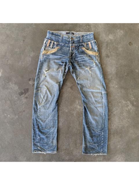 Japanese Brand - Vtg Dominate Double Waist Faded Distressed Denim Jeans Pants