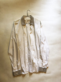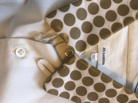 Jil Sander 2015 cotton shirt with dot printed PVC collar and cuffs with choker button Tagged as size 40 - 15 3⁄4 in standard shirt size, corresponds to a IT46-48 (S/M) Perfect condition, no stains or holes, a single dot on left arm as shown in the pics Plain measurements: Shoulders 44 cm, pit to pit 48 cm, sleeves 68 cm, front lenght 73 cm