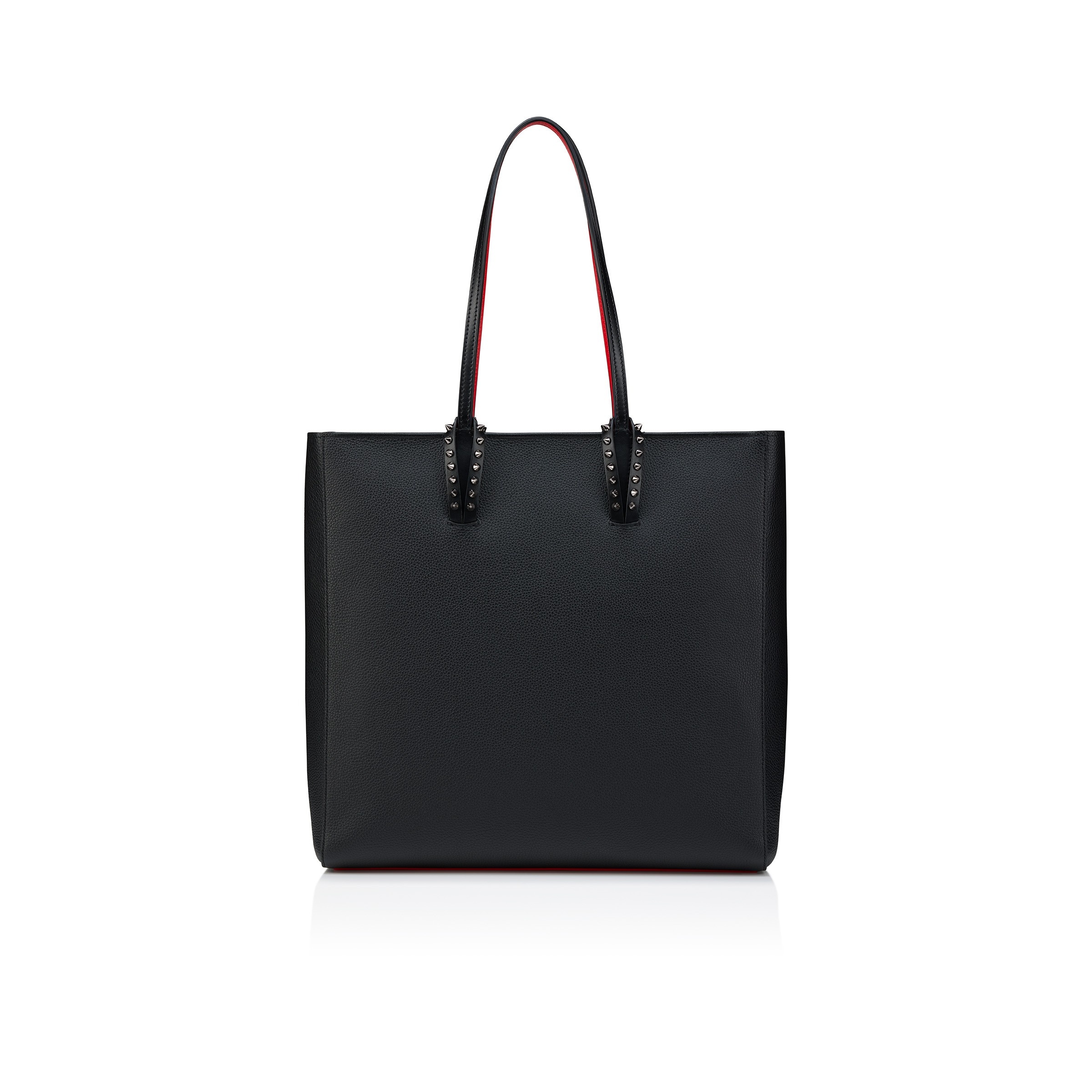 With its supple construction, the Cabata zipped tote showcases Maison Christian Louboutin's savoir faire. This model features the hallmarks of the iconic Cabata tote: signature gun metal spikes encircling the handles, a bold sneaker sole and Loubi red lining. It is crafted in grained black calf leather and fastens with a zip. - 2 handles, drop 9.8 inches/25 cm - Zip fastening - 1 main compartment - Dimensions: - H 15.7 x L 13.8 x W 3.9 inches - H 40 x L 35 x W 10 cm Product information Reference: 3255085B078 Color: Black Material: Calf leather and spikes Dimensions: 400mm x 350mm x 140mm