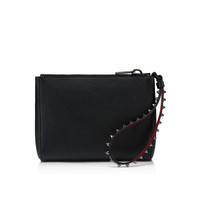 The Cabata pouch in size mini is designed to slip easily into the Maison Christian Louboutin Cabata Tote, or be carried on its own as a clutch. It features a slender wrist strap, adorned with signature gun metal spikes. This model is crafted in supple grained calf leather in black. - Zip fastening - Leather wrist strap - 1 main compartment - Dimensions: - H 5.5 x L 7.5 x W 1.8 inches - H 14 x L 19 x W 4.5 cm Product information Reference: 3255159B078 Color: Black Material: Soft calf leather Dimensions: 140mm x 190mm x 45mm