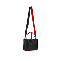 With its supple construction, the Cabata soft tote in size mini showcases Maison Christian Louboutin's savoir faire. This model features the hallmarks of the iconic Cabata tote: signature metallic spikes encircling the handles, a bold sneaker sole and Loubi red lining. It is crafted in grained black calf leather. - 1 adjustable, removable leather shoulder strap, 43.5-49 inches - 2 handles, drop 4.7 inches - Security hook - 1 main compartment - Dimensions: - H 6.7 x L 9.4 x W 3.9 inches Product information Reference: 3255086B078 Color: BLACK/GUN METAL Material: Soft calf leather and spikes Dimensions: 170mm x 240mm x 100mm