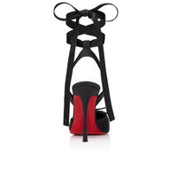 A testament to Christian Louboutin's 'savoir-faire', the Cassia Lace Up pump has a square toe. Inspired by ballet slippers, they are made entirely from black crepe satin. Enhanced by a grosgrain trim, it sits on a 100 mm stiletto heel and ties around the ankle with a ribbon. Product information Reference: 1250498B439 Color: Black Material: Crepe satin Heel Height: 100 mm