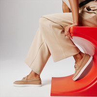 The Chambeliboat loafer for women features a sleek silhouette and supple structure. This refined model is entirely crafted in Lionne brown nubuck. Showcasing Maison Christian Louboutin's creativity, it features a metal collar pin through the tongue. A summery model with a white rubber sole. Product information Reference: 1250842F486 Color: Lionne Material: Reversed leather
