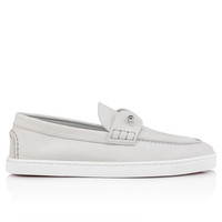 The Chambeliboat loafer for women features a sleek silhouette and supple structure. This elegant model is entirely crafted in Albatre white nubuck. Showcasing Maison Christian Louboutin's creativity, it features a metal piercing through the tongue. A summery model with a white rubber sole. Product information Reference: 1250842F465 Color: Albatre Material: Reversed leather