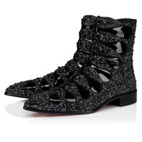The sophisticated Circus Booty Perla ankle boot enchants with its urban silhouette. This Maison Christian Louboutin shoe is crafted from black suede leather and patent calf leather and is adorned with over 10,000 strass and pearls. It features a pointed toe and a zip fastening at the back. This shoe is part of the Hollywood Capsule. Product information Reference: 1260265BK01 Color: Black Material: Suede leather and strass, patent calf leather