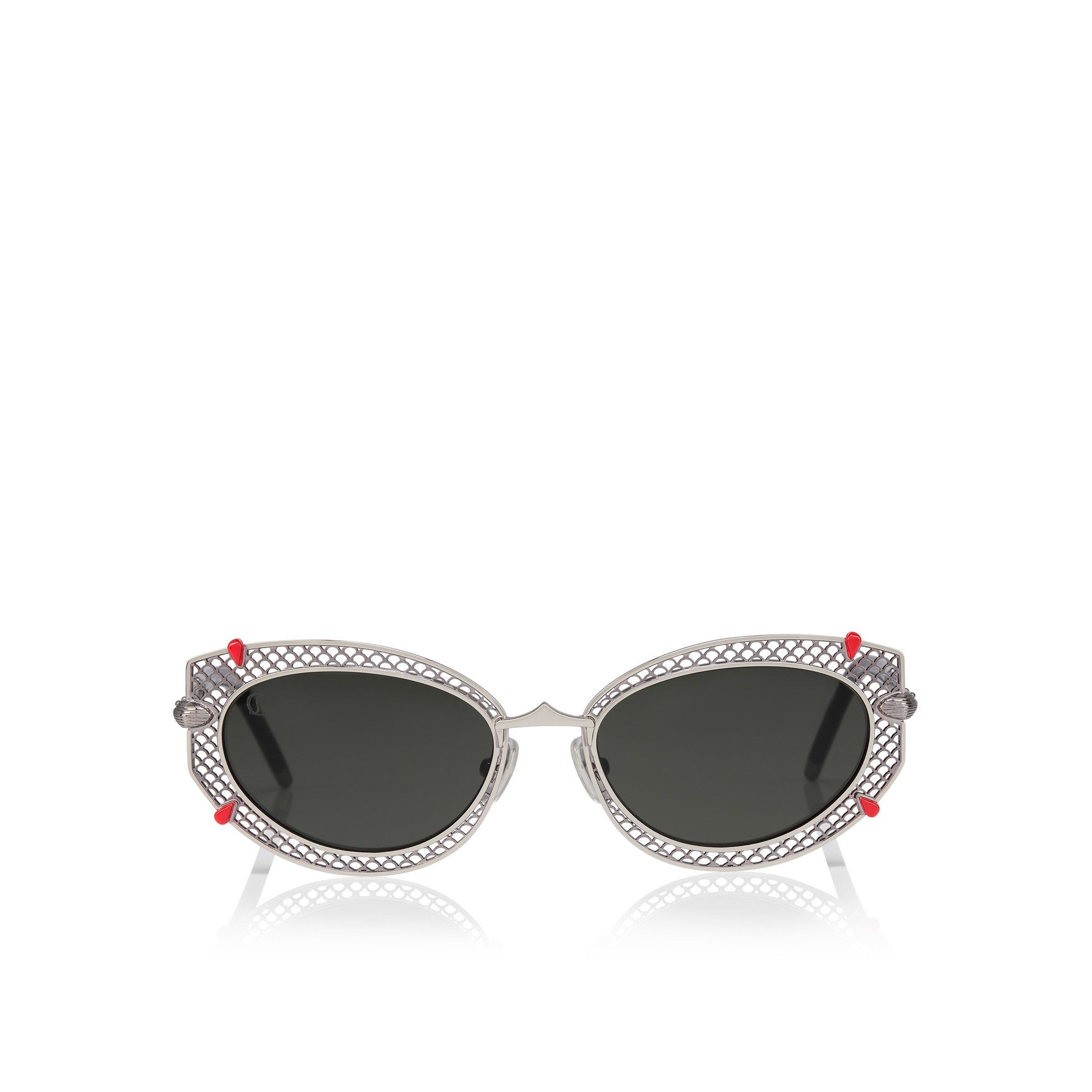 The Dolly LB0030 sunglasses from Eyewear Collection 2 are inspired by the iconic Christian Louboutin Dolly Pump and a touch of Art Deco. The frames are a tribute to lightness, embodying a new level of femininity and grace. This model features a shiny dark ruthenium metal style with an oval shape. A palmette pattern embellishes the frontal profile grabbed by tiny red soles signifier combined with the high-performance Zeiss smoke lenses that offer exceptional quality, comfort, and durability for the Christian Louboutin collection. This model is an online exclusive. Dimensions: - Lens width: 54mm - Bridge: 19mm - Temple length: 135mm These frames are suitable to add prescription lenses. Made in Italy. Product information Reference: 1265189K744 Color: Dark ruthenium Material: Metal Lens width: 54 mm Bridge length: 19 mm Temple length: 135 mm Category of filtration: 3
