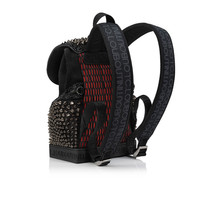 The urban Explorafunk backpack in size small features modern lines. This model in all-over black combines veau velours and sparkly suede and is adorned with a Maison Christian Louboutin signature and iconic matt black spikes. - 1 handle, drop 2.4 inch> - 2 backpack straps, 28.3 to 33 inch - 1 crossbody strap - Magnetic fastening - 1 interior zipped pocket - 2 outer zipped pockets - Dimensions: - H 10.2 x L 8.2 x W 3.9 inches Product information Reference: 3245091B754 Color: Black Material: Cotton Dimensions: 260mm x 210mm x 100mm
