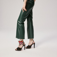 Maison Christian Louboutin's Farfa Luna is a couture sandal, set on a discreet 2 mm platform sole. It has a daring 120 mm heel that appears slim from the back, yet structured from the side, revealing a glimpse of Loubi red. The soft almond-shaped toe is complemented by an elegant peep toe. The left ankle is adorned with a striking, handcrafted, colorful butterfly, creating a bold play of asymmetry. This model is crafted from black velvet and finished with tonal lining for a contemporary appeal. It also features a padded insole. This model features an 'Everlasting Red' sole thanks to an innovative coating technique to ensure resistance and lasting vibrancy for our signature Louboutin red. Product information Reference: 1260756T177 Color: Black Material: Velvet Heel Height: 120 mm