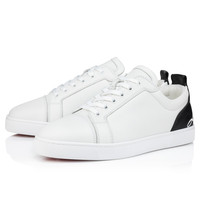 The Fun Louis Junior pair of low-top sneakers are sculpted from calf leather and present bold elegance. The pristine white leather meets a contrasting black accent on the heel, creating an eye-catching finish. Embellished with Maison Christian Louboutin's signature initials, the iconic Loubi red heel makes every step a statement of individuality. Product information Material: Calf leather Color: White Reference: 3240080WH51 Collection: Fall Winter 24