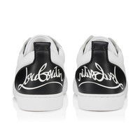 The Fun Louise Junior low-top trainer is inspired by the world of tennis and its supple construction is set on a rubber sole. Blending elegant and sporty lines, this iconic model is entirely crafted in white and black calf leather. This model showcases Maison Christian Louboutin's exemplary creativity, featuring the creator's signature on the back and delicate topstitching. Product information Reference: 1251019WH51 Color: Black Material: Calf leather