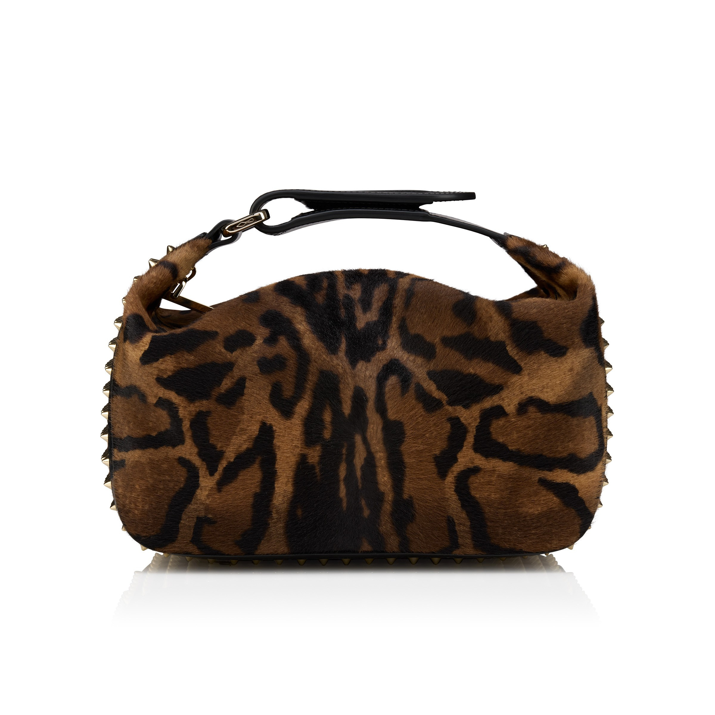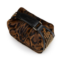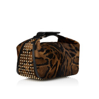 With its contemporary look, this stylish wash bag can be used as a bag for any occasion. Embellished with striking Maison Christian Louboutin gold metal spikes on the sides and featuring a side handle with a buckle. This model is crafted in Bengali animal-print hairy calf leather. - Zip fastening - 1 main compartment - 6 internal leather pockets - Side handle 9 cm/3.5 inches H 6 x L 9.5 x W 5 inches H 15 x L 24 x W 13 cm Product information Reference: 32553353221 Color: Brown Material: Bengali printed hairy calf leather and spikes Dimensions: 150mm x 240mm x 130mm