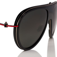 Greggo LB0004 is one of the most iconic styles of this sunglasses collection. It features a pilot style with metal detail on the frontal that enrich the acetate. A red touch is given by enamel on temple side profile. Crafted metal with palmette pattern embellished the temples structure. This model is made in a black and silver color with smoke lenses. High-performance Zeiss lenses offering exceptional quality comfort and durability for Christian Louboutin collection. These pilot glasses are specially designed with clean, stylized lines that create an effortlessly chic look, its shiny black acetate is reminiscent of the polished leather from traditional oxford shoes, as the Greggo ones, reflecting a bold yet classic statement. Infused with a twist of modernity, the design features distinct Art Deco elements that pulse with dynamism. The cuneiform stud along the temples adds an avant-garde touch, while the delicate silver wire tracing the front profile creates a stunning contrast against the deep black acetate. It’s a marriage of tradition and innovation, each glance revealing another layer of artistry. The iconic Louboutin red runs like a fil rouge through the design, appearing in subtle accents that serve as a signature of the brand's inimitable style. Step into a world where elegance meets modernity. With Louboutin sunglasses, every day is a runway—and every glance is a statement. These frames are suitable to add prescription lenses. Made in Italy. Product information Reference: 1255338K711 Color: Shiny Black Material: Metal Lens width: 61 mm Bridge length: 17 mm Temple length: 140 mm Category of filtration: 3