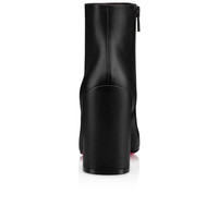 The Jane Booty features a square, bevelled 85 mm heel. This Maison Christian Louboutin ankle boot is crafted from black calf leather. A city shoe distinguished by sleek lines and a padded insole. This model features a new 'Everlasting Red' sole thanks to an innovative coating technique that ensures resistance and lasting vibrancy for our signature Louboutin red. Product information Reference: 3250799BK01 Color: Black Material: Calf leather Heel Height: 85 mm