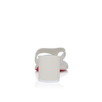 The Janetonga thong features a striking square 55 mm beveled heel. Crafted from white lamb nappa leather, this Maison Christian Louboutin sandal showcases V-shaped straps that delicately frame the foot, offering a sleek and timeless design. Product information Reference: 3250164W302 Color: Bianco Material: Lamb nappa leather Heel Height: 55 mm