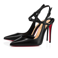 The Jenlove is a contemporary reworking of the classic d’Orsay court shoe. This elegant yet gutsy pump sandal is crafted from glossy black kid leather, perched atop a 100 mm wrapped stiletto heel. The upper is constructed from a single cut of material and features an innovative strap design, incorporating a crossover detail with tonal wrapped buckle closure and an individual post strap Product information Material: Leather Color: Black Reference: 3210590BK01 Heel height: 100 mm Collection: Fall Winter 21