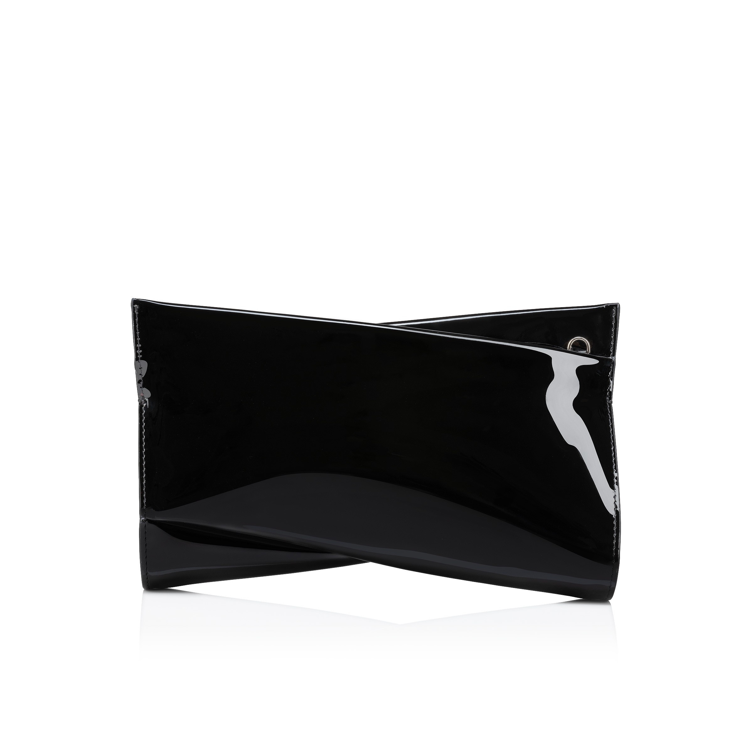 The Loubitwist clutch in size small has a twisted shape, showcasing Maison Christian Louboutin's creativity. Crafted in black patent leathers, this model will add an elegant touch to any evening look. - A detachable chain strap allows it to be carried by hand or over the shoulder - Zipped compartment with two card slots - Dimensions: H 5.7 x L 8.5 x W 1.7 inches H 14.5 x L 22 x W 4.5 cm Product information Reference: 3245151BK01 Color: Black Material: Patent leather