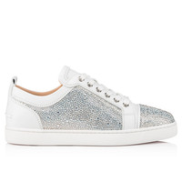 Taking inspiration from the tennis shoes of the 1980s, the Louis Junior Strass effortlessly blends retro chic with audacious modern elements. A master of reinvention, this sneaker takes on new textures and fabrics each season. This more classic model features all-over Bianco, with both calfskin leather and suede creating a stunning contrast. This sneaker is embellished with an array of shimmering strass. Product information Material: Suede Color: White Reference: 3190718W224 Collection: Fall Winter 19