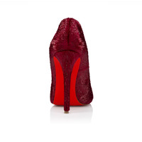 The tapered silhouette of the Miss Z pump ensures a sophisticated style. Set on a 120 mm stiletto heel that reveals the Loubi red of the iconic sole and featuring a padded insole, this Maison Christian Louboutin shoe is crafted from red Fever shiny velvet effect calf leather. Revealing the foot with its elegant vamp, this model features an 'Everlasting Red' sole, thanks to an innovative coating technique that ensures resistance and lasting vibrancy for our signature Louboutin red. This model is an online exclusive. Product information Reference: 1260395R667 Color: Fever Material: Shiny velvet effect calf leather Heel Height: 120 mm