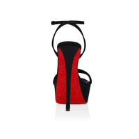 The Miss Z Sandal Alta has an elegant silhouette. Set on a 160 mm stiletto heel that reveals its iconic red sole covered in red strass, this Maison Christian Louboutin sandal is made from black crepe satin and has a padded insole. It has an open toe and a slim heel strap. This shoe is part of the Hollywood Capsule. Product information Reference: 1260666B439 Color: Black Material: Crepe satin Heel Height: 160 mm