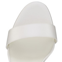 The Miss Z Sandal Du Desert is crafted in Ivory white crepe satin as part of the bridal collection. Set on a 100 mm stiletto heel that reveals the iconic Loubi red sole, this sleek and refined sandal interprets Maison Christian Louboutin's audacious flair. A crepe satin tie circles the ankle, sealed with a knot, while the front strap elegantly reveals the foot, and a fully padded insole offers support. This model features an 'Everlasting Red' sole thanks to an innovative coating technique to ensure resistance and lasting vibrancy for our signature Louboutin red. The insole bears a gold heart-shaped stamp, along with the Christian Louboutin signature. Product information Reference: 1260383W446 Color: Ivory Material: Crepe satin Heel Height: 100 mm